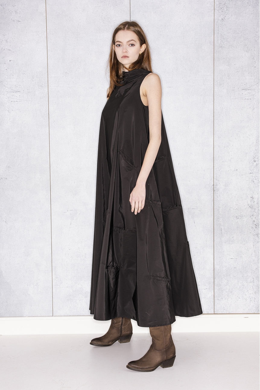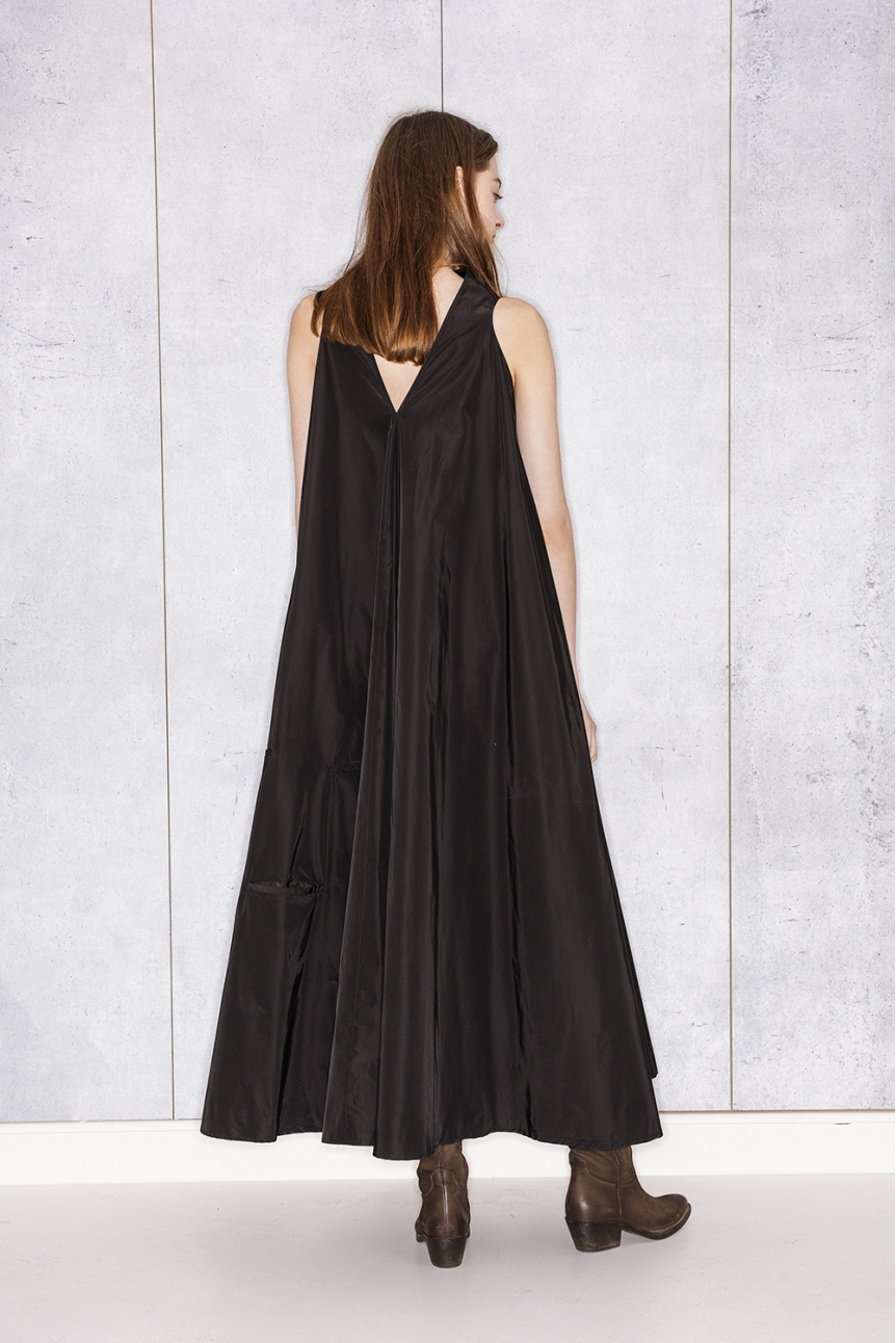 13 Pockets Bell Dress Black Taffeta