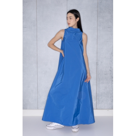 Bell Dress Long in Blue Taffeta