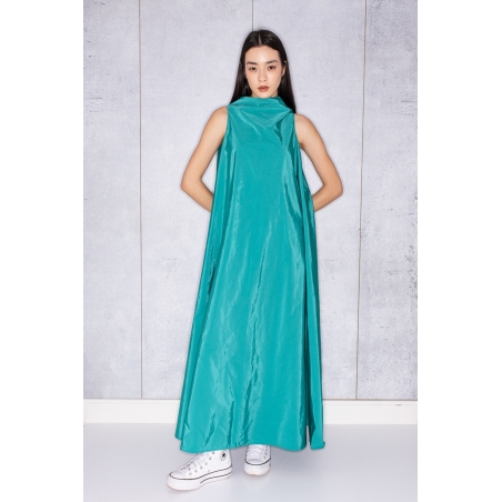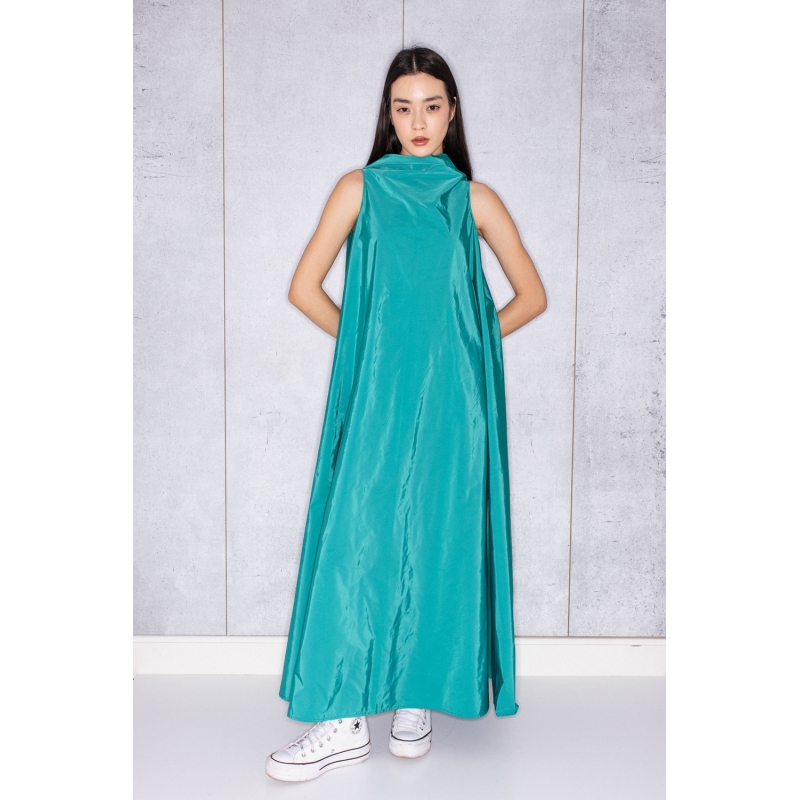 Bell Dress Long in Green Taffeta