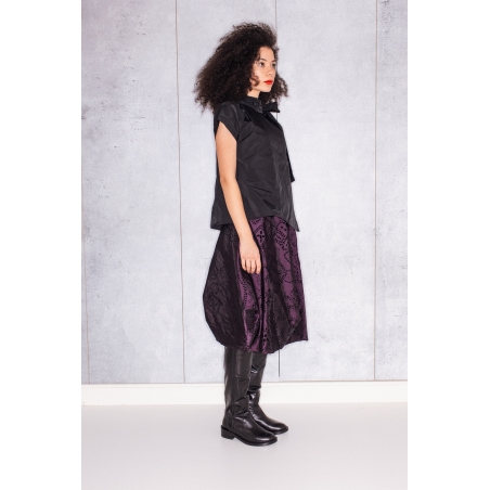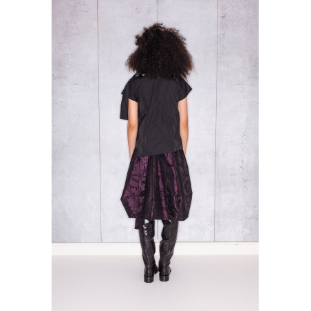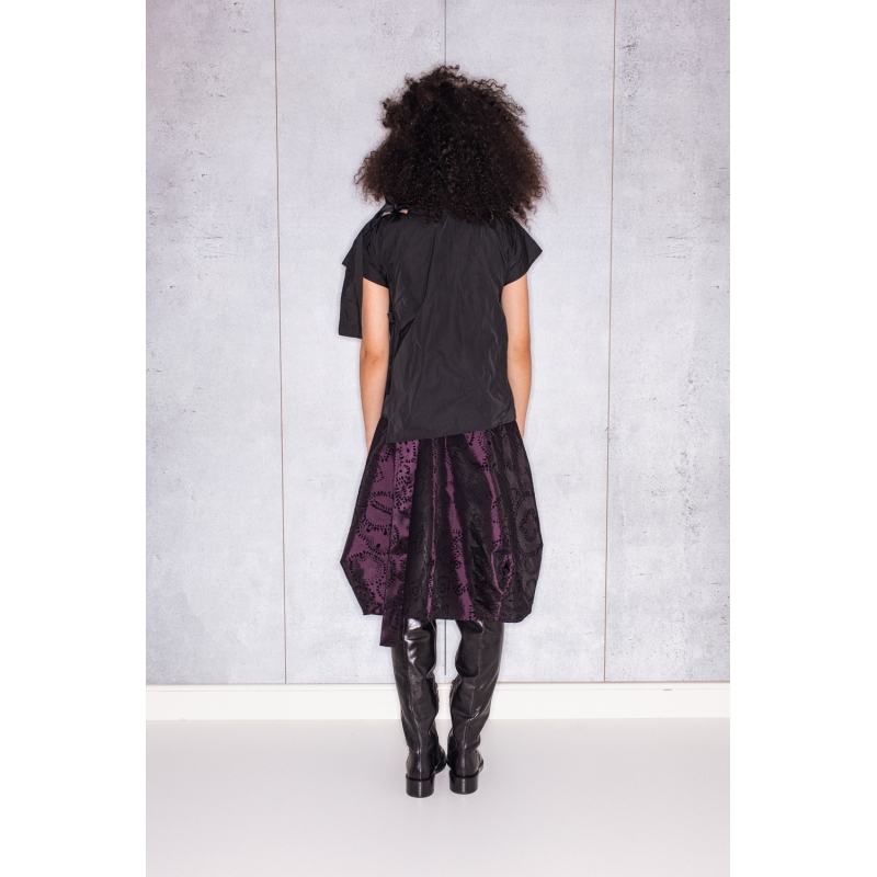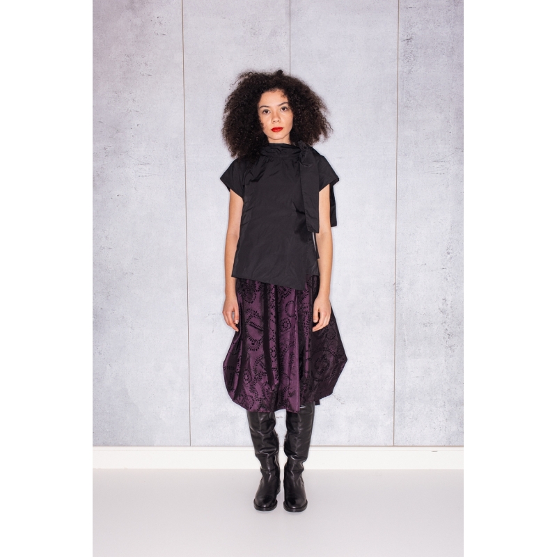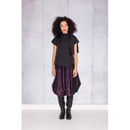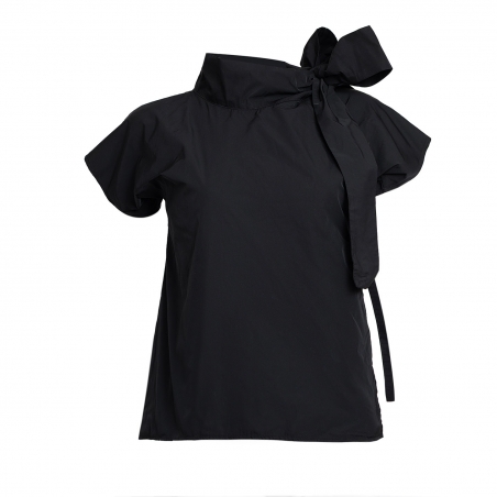 Halves Blouse with Shoulder Ribbon in Black Taffeta