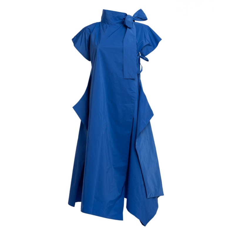 Halves Dress with Shoulder Ribbon in Blue Taffeta