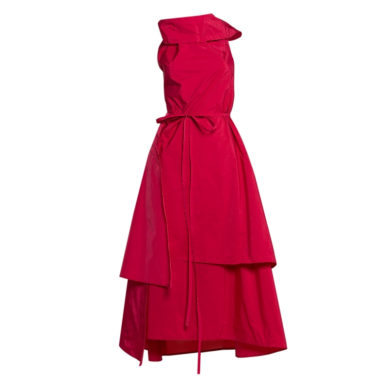 High Collar Bareback Dress in Strong Pink Taffeta