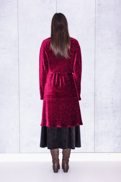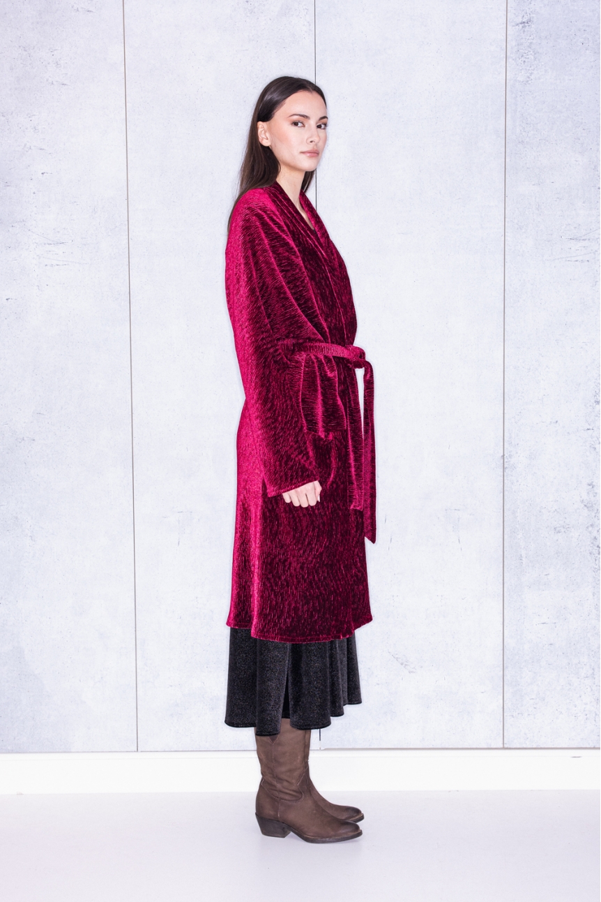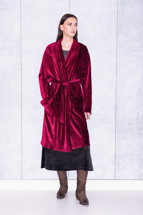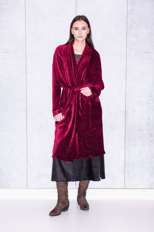 Long Cardigan In Wine Velvet