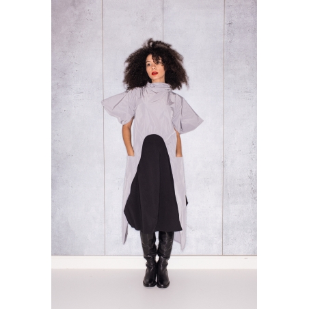 Long Sides Top in Light Grey Taffeta