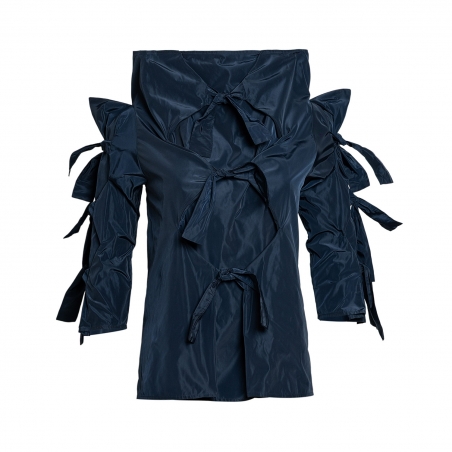 Many Ribbons Blouse in Navy Taffeta