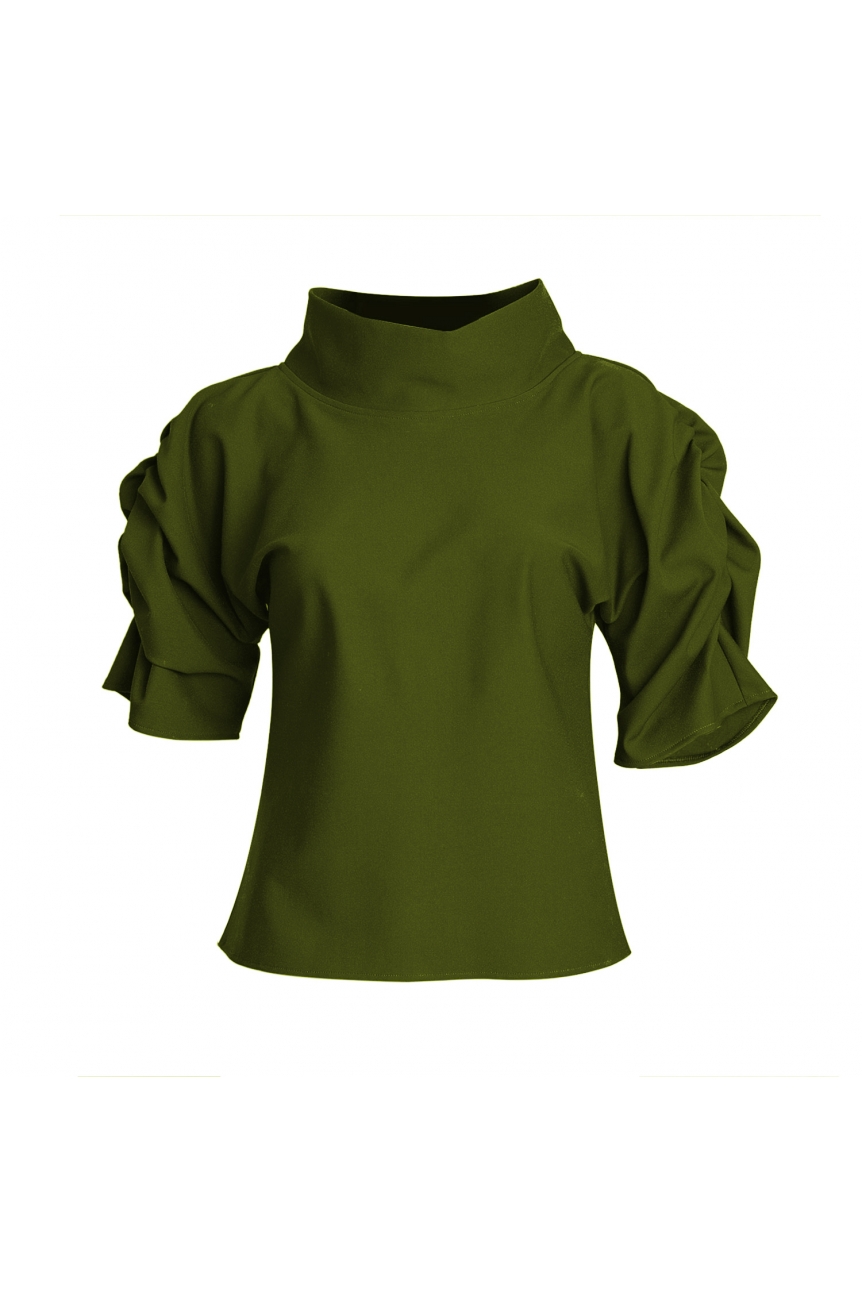 Puff Blouse with Collar in Olive Neoprene