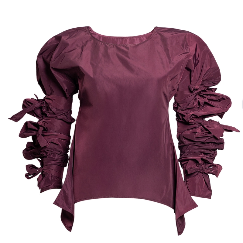 Ribbon Wrapped Blouse in Bordeaux Taffeta