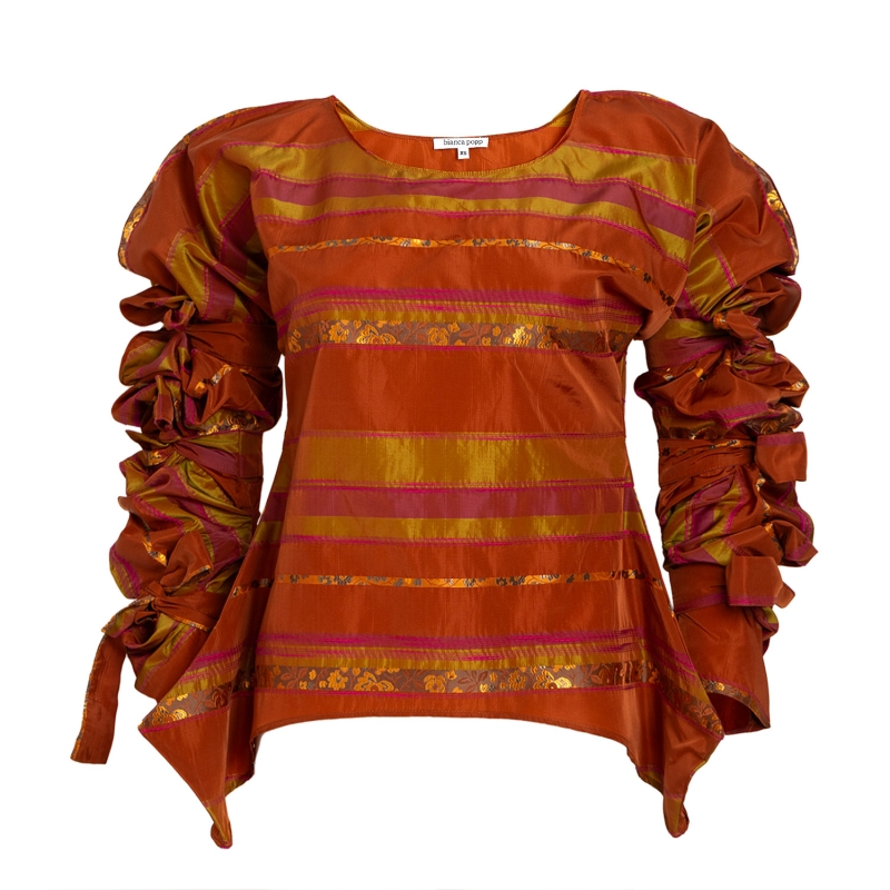 Ribbon Wrapped Blouse in Orange Striped Taffeta