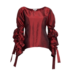 Ribbon Wrapped Blouse in Red Taffeta