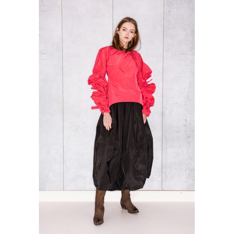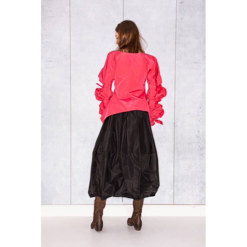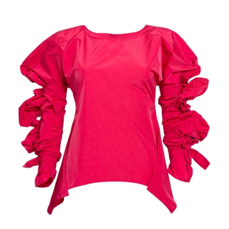 Ribbon Wrapped Blouse in Strong Pink Taffeta