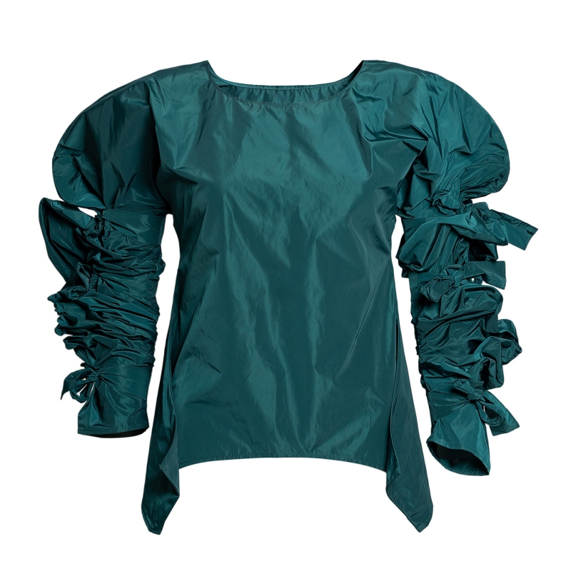 Ribbon Wrapped Blouse in Teal Taffeta