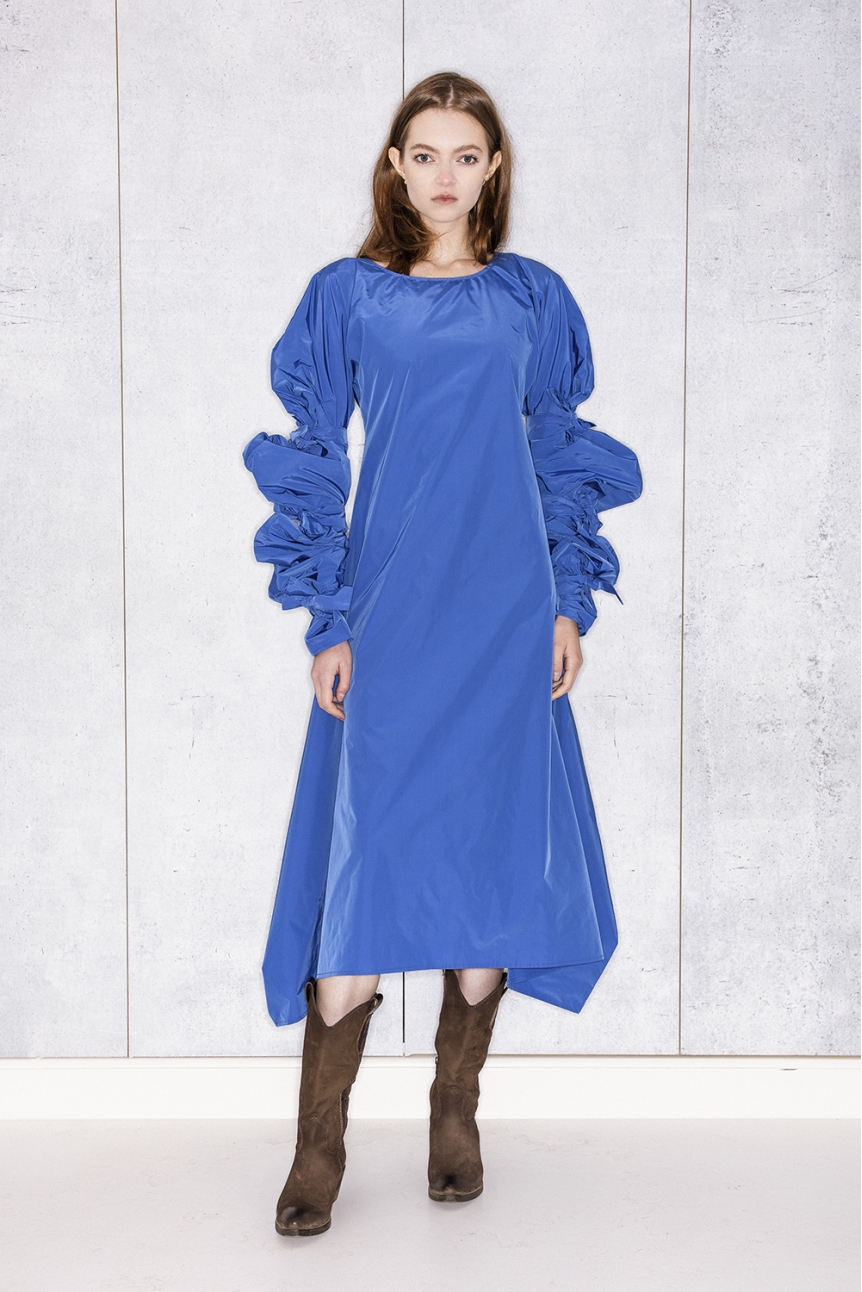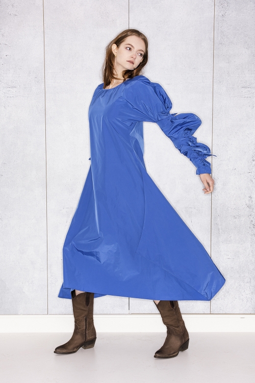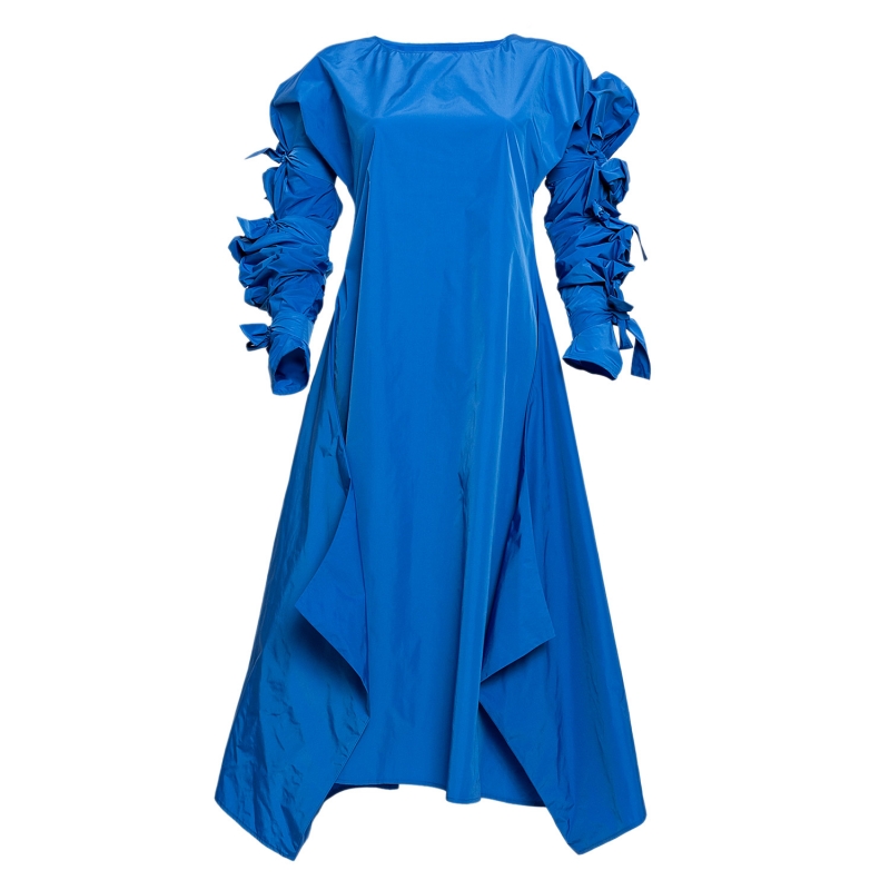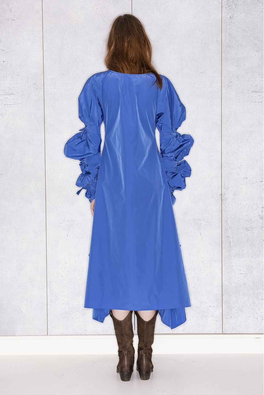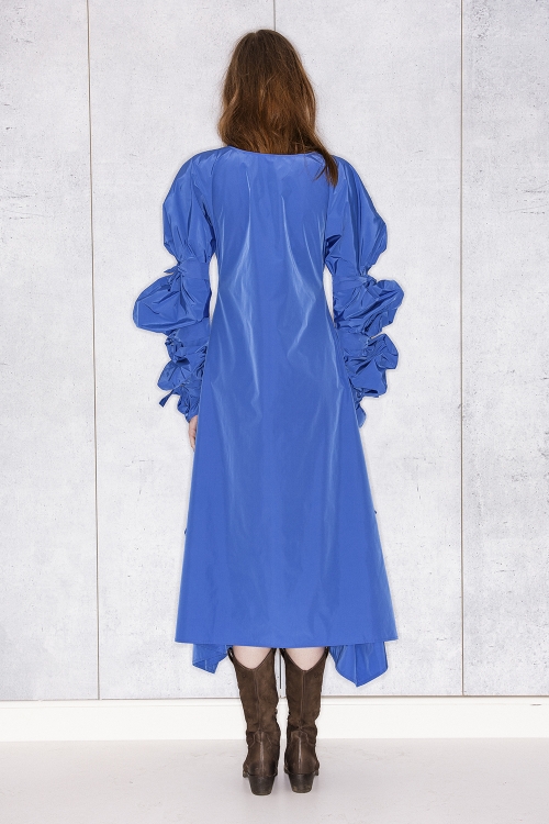 Ribbon Wrapped Dress in Blue Taffeta