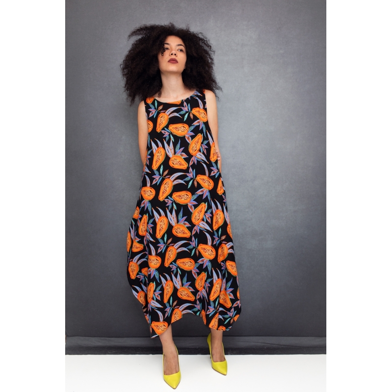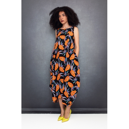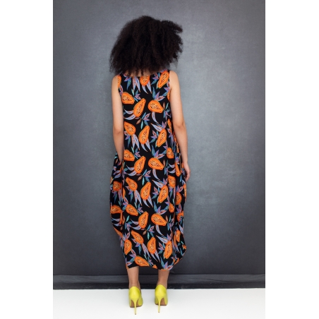 Semiballoon Dress in Black with Papayas