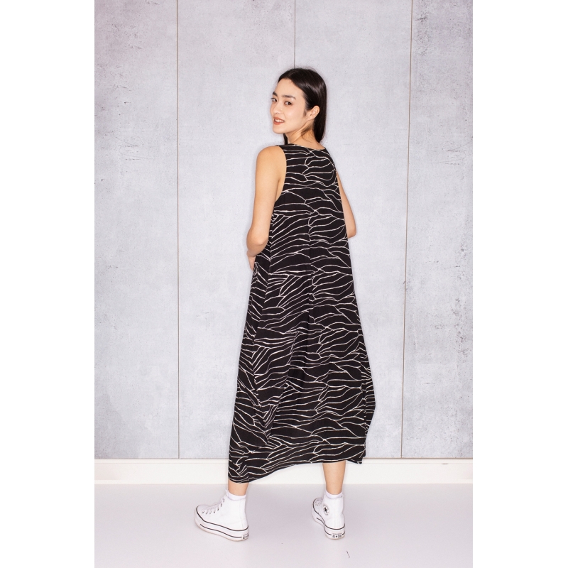 A sculptural dress with soft volume and a rounded silhouette that moves with you without clinging, designed to create space around the body, balancing ease and structure, with deep side pockets for everything you carry, seen and unseen.