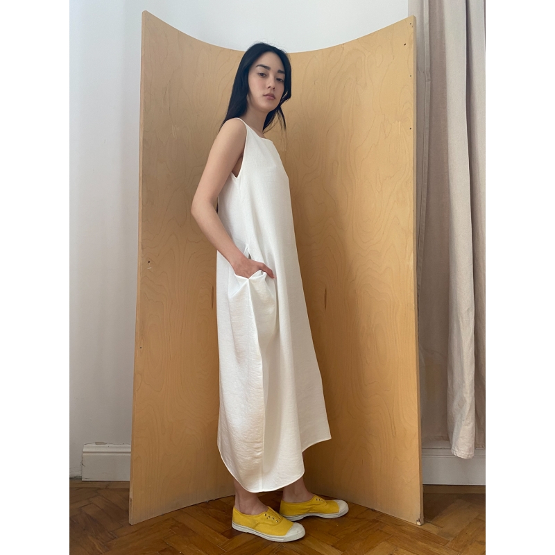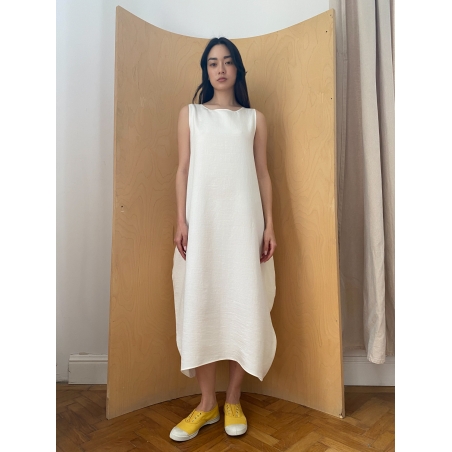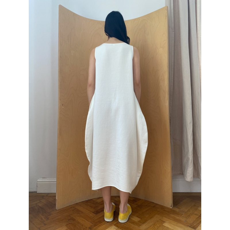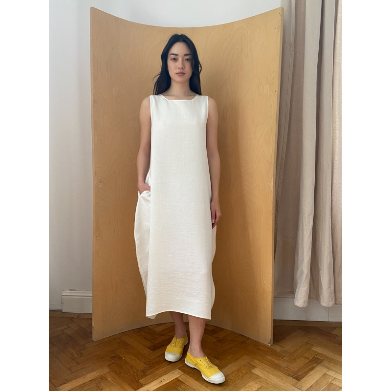 Semiballoon Dress in White Linen