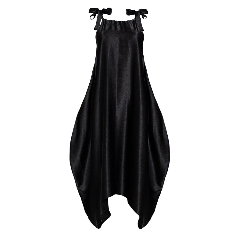 Semiballoon Dress with Ribbons in Black