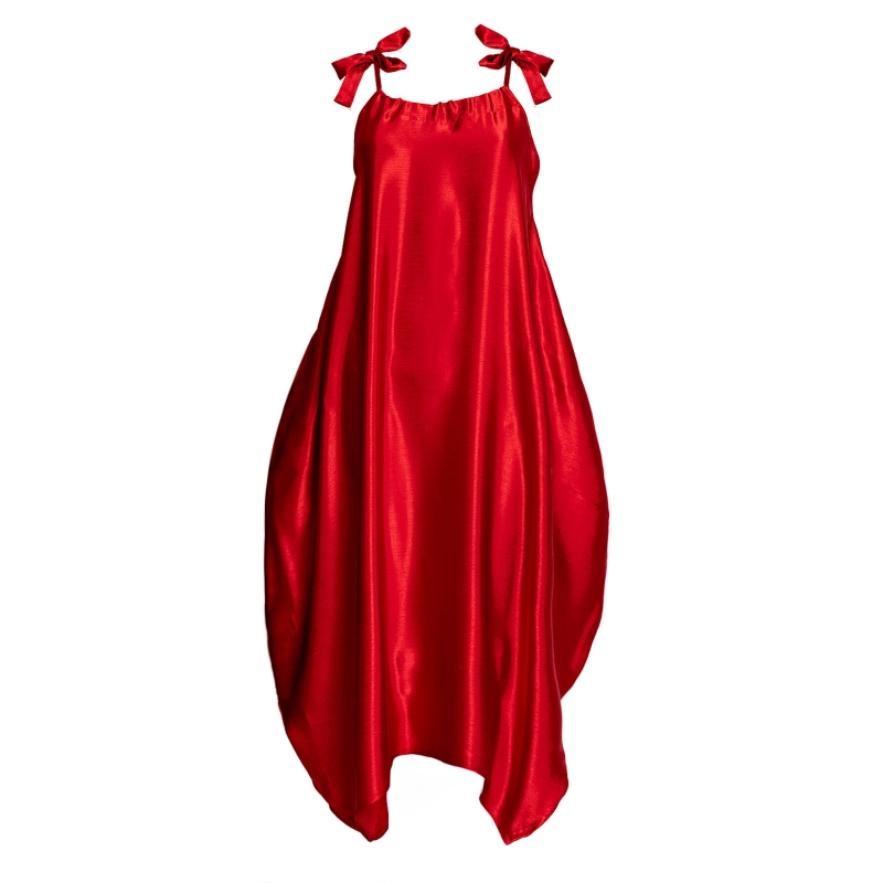 Semiballoon Dress with Ribbons in Red
